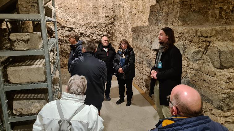 Im vergangenen Jahr hatten wir den Innenraum und die Schatzkammer des Kölner Doms besichtigt und den Abend im Brauhaus Schreckenskammer ausklingen lassen. Schon damals waren wir uns einig: „Das machen wir noch einmal“. So luden wir zum 20. November 2025 zu unserer Exkursion, wahlweise ,,Führung durch die Ausgrabungen unter dem Kölner Dom" oder ,,Führung durch das Dach des Kölner Doms“ ein. Leider hatten sich für „Dach“ nur 2 Mitglieder begeistern können (die gut 240 Stufen dürften viele abgeschreckt haben), so hatten wir gleich eine zweite Führung durch die Ausgrabungen gebucht.