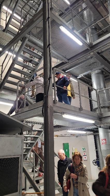 Wir erreichten das Zielbauwerk, in dem wir über eine 25 Meter hohe Gitterrost-Wendeltreppe den Ausgang im Parkhaus des Musicalzelts erreichten. Hier bedankten wir uns bei unserem Führer für die hochinteressanten Erläuterungen dieses unterirdischen Bauwerks.