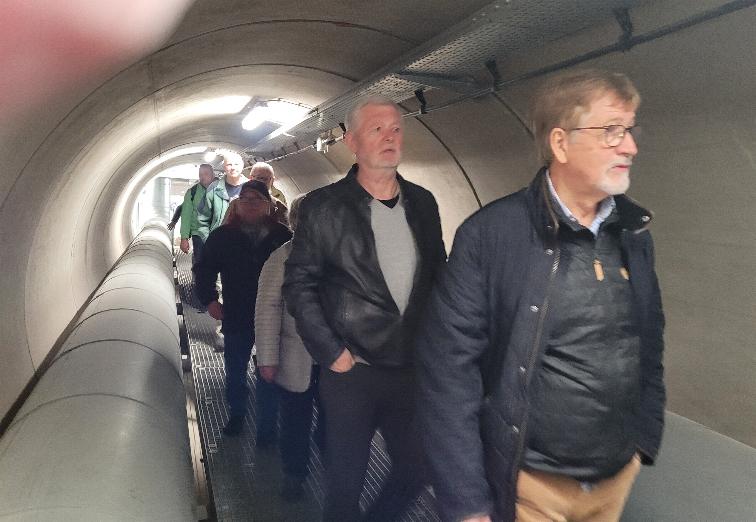 Michael Busch nahm Verbindung mit dem Besuchsdienst der RheinEnergie auf. Der ursprünglich vereinbarte Termin musste zwar verschoben werden, aber so konnte ich die Einladungen versenden. Wir wollten diese Exkursion wieder mit unseren Frauen und Freunden durchführen. Leider musste ich mit der Einladung darauf hinweisen, dass der Weg durch den Tunnel nicht behindertengerecht ist. Der Einstieg erfolgt über eine Gitterrosttreppe, bei der man bis zum Boden schauen kann und man daher schwindelfrei sein sollte. Außerdem gibt es einen Gitterrostboden und Gitterrosttreppen, die nur mit festem Schuhwerk betreten werden sollten. So sind sowohl beim Einstieg wie auch beim Ausstieg circa 100 Gitterroststufen zu überwinden. Leider haben diese Voraussetzungen einige Kameraden davon abgehalten, an dieser Exkursion teilzunehmen.