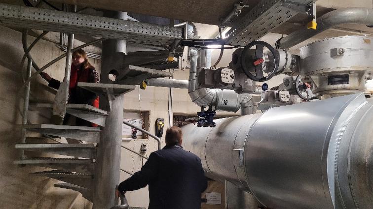 Hier wurden wir von einem Mitarbeiter der RheinEnergie empfangen, der uns ausführlich und anschaulich über das Fernwärmenetz und den Bau des Fernwärmetunnels informierte und uns anschließend durch den Tunnel begleitete.