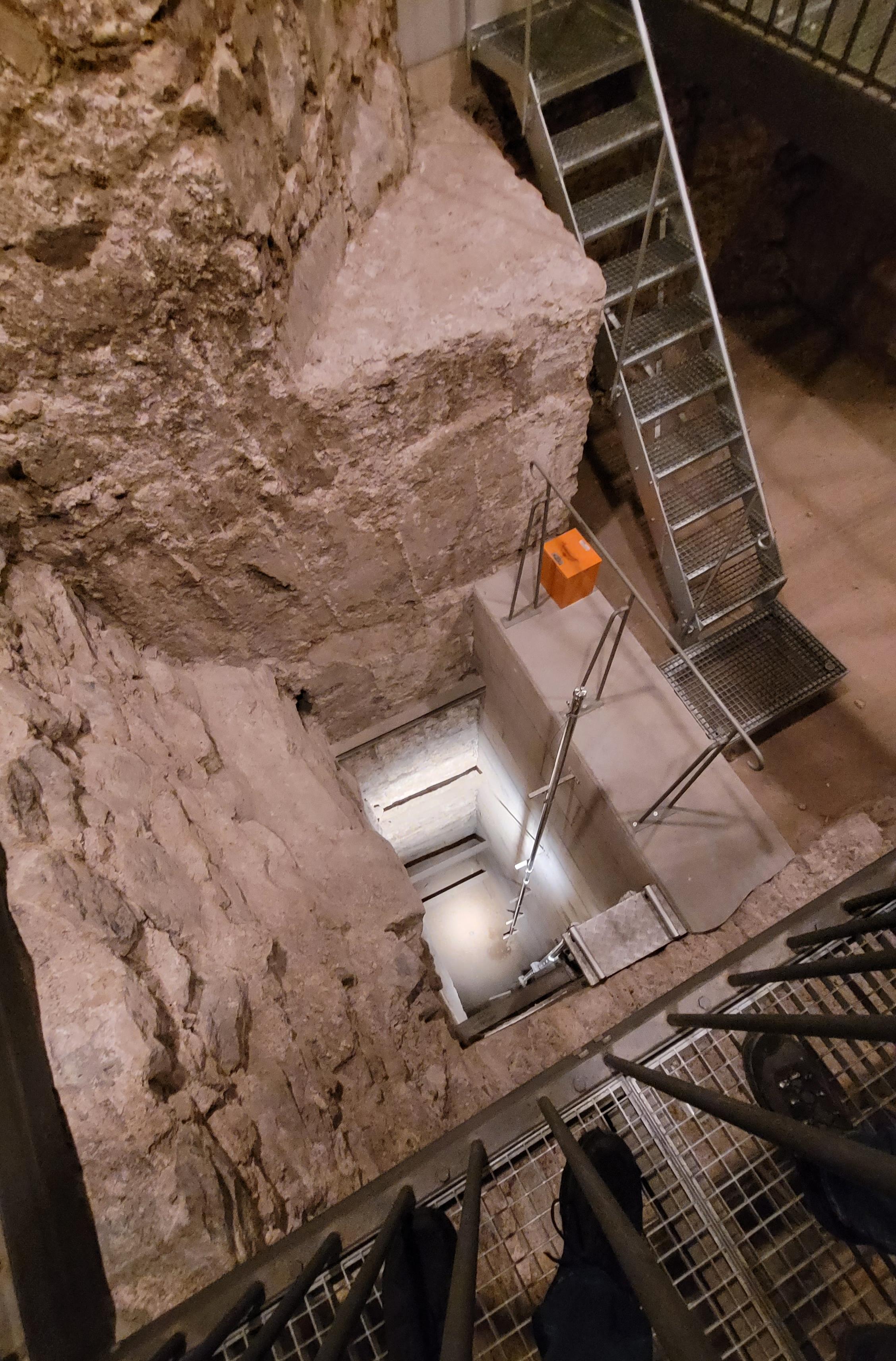 Den Ablauf des Baugeschehens machen hingegen die in der Ausgrabung freigelegten Fundamente nachvollziehbar. Ihre variierende Größe und statische Anpassung lassen den mit jedem Bauabschnitt wachsenden Erfahrungsstand der damaligen Dombauhütte lebendig werden. Während unseres Rundgangs wurde die bemerkenswerte Leistung der mittelalterlichen Baumeister anhand der gewaltigen Fundamente und der damit verbundenen Erdarbeiten auf eindrucksvoller Weise fassbar. An einer Stelle wurde die Baugrube eines mächtigen Pfeilers bis zur Fundamentplatte in 15 Meter Tiefe freigelegt.