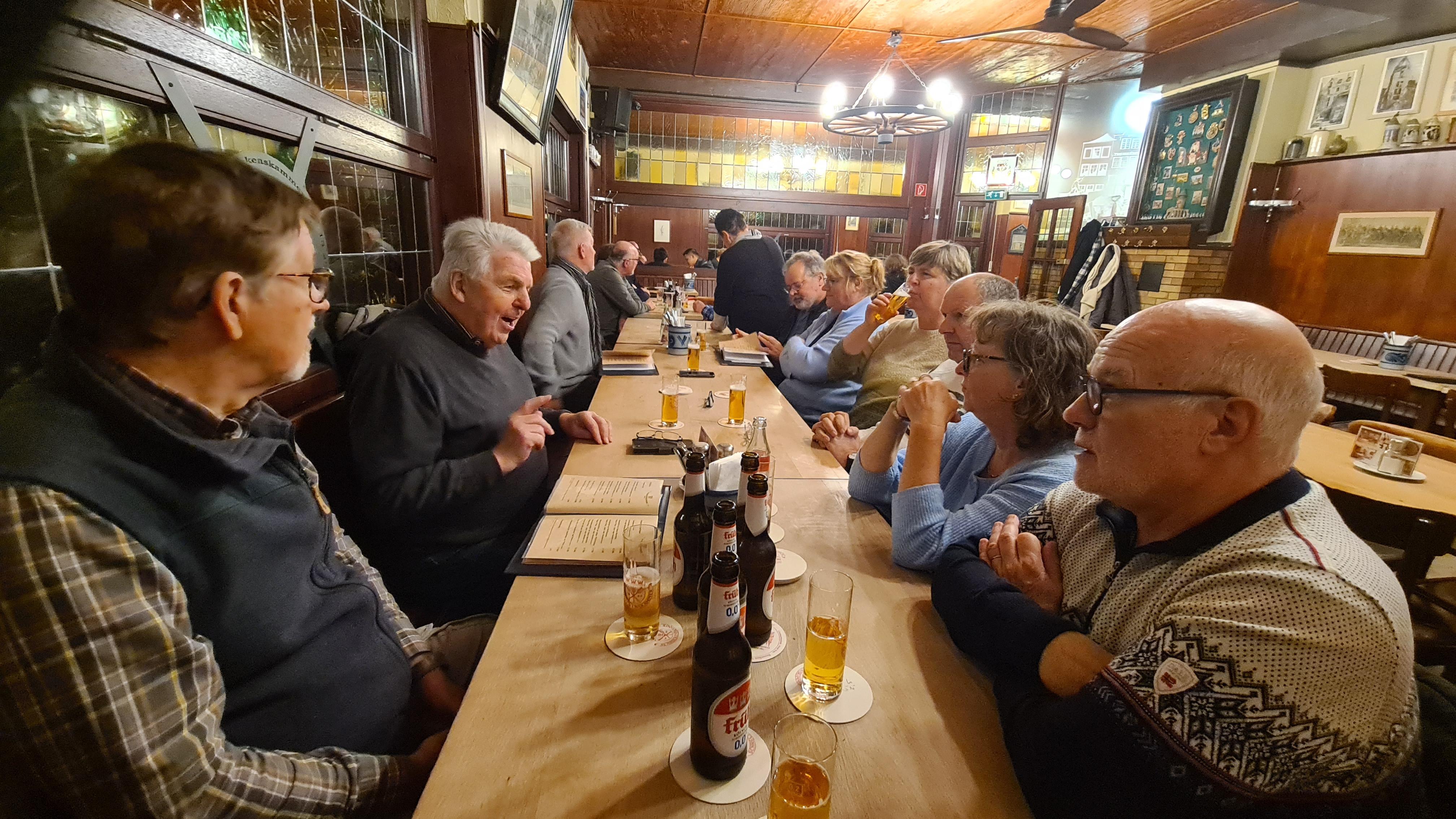 Natürlich drehten sich die Gespräche um die Ereignisse des vergangenen Jahres, wobei die Veranstaltungen der Gruppe Rheinland wie die Exkursionen zum Regierungsbunker im Ahrtal und zur Besichtigung des Kölner Doms im Vordergrund standen. Zusätzlich nutzten wir auch die vom Kasino bereitgestellte Technik und zeigten Bilder dieser Veranstaltungen, aber auch Bilder und Filme aus den 70ger und 80ger Jahren, an die sich viele von uns noch erinnern konnten. Der vorweihnachtlich geschmückte Raum und die Getränke trugen sicher zu der guten Stimmung bei.